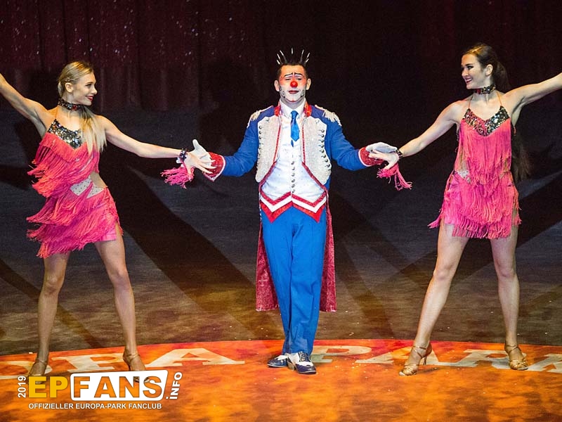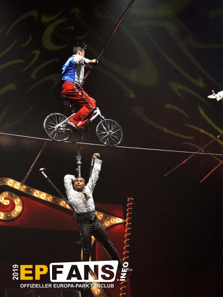 Zirkus Revue 2019/2020 Seit einigen Jahren zeigt der Europa-Park in der Wintersaion in einem Zirkuszelt auf dem Festival Gelände eine Zirkus-Revue mit zahlreichen international bekannten Artisten. Das beheizte Zelt stammt vom Circus Fliegenpilz. Es hat einen Durchmesser von 44 m und fasst 2200 Besucher in Schalensitzen.