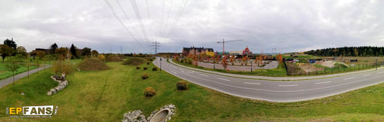 Links im Bild der neue Mitarbeiter-Campus, mittig deutlich zu erkennen das Hotel Krønasår und etwas weiter rechts Rulantica und die YULLBE-Halle. (zum Vergrößern anklicken, ca. 2,5 MB)