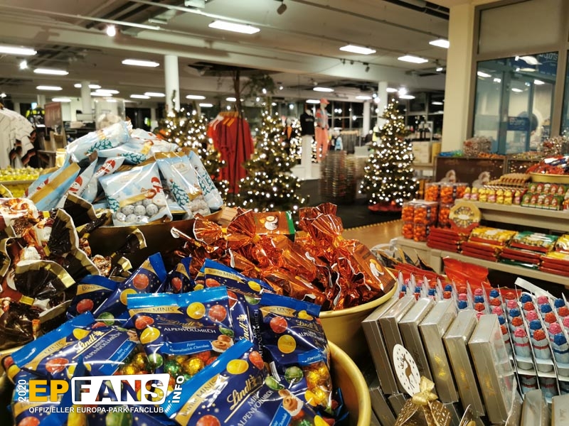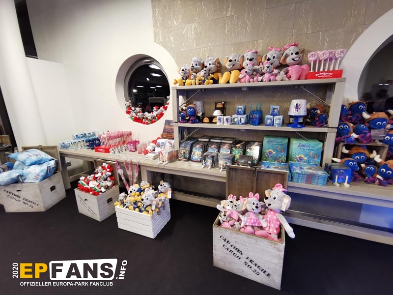 Ein kleiner Bereich bei der Kasse widmet sich den eigenen Europa-Park Artikeln (insbesondere Ed, Edda und Snorri in Plüsch, Bücher und kleine Souvenirs) und EMOTIONS Gutscheinkarten.