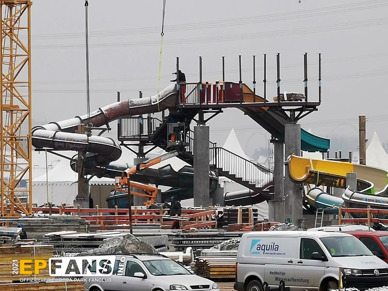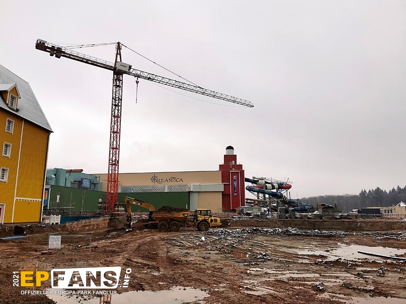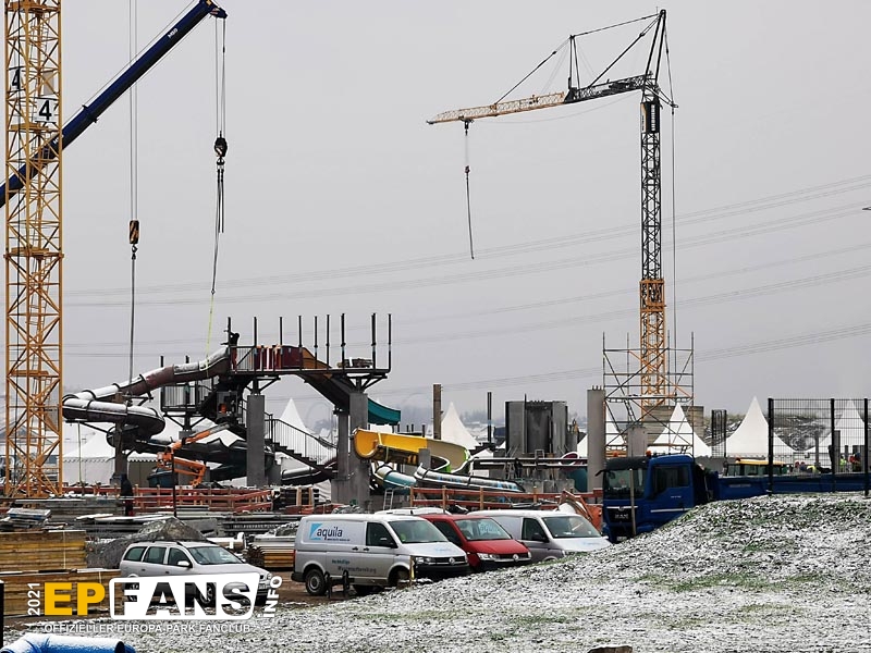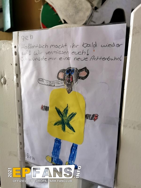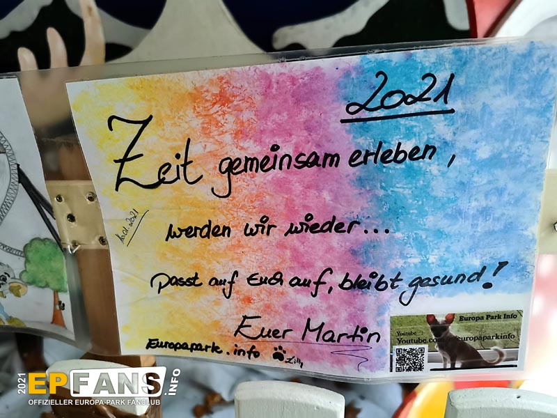 Nicht desto trotz möchten wir an dieser Stelle wieder ein paar Nachrichten zusammenfassen, die es vor Ort gibt oder im Internet zu finden sind: Baustelle Rulantica: ![]() Moment mal, warum denn "Baustelle"? Rulantica ist doch schon fertig? Stimmt! Aber wie immer ruht man sich in Rust nicht aus, sondern geht immer gleich den nächsten Schritt. So gibt es inzwischen deutlich sichtbare Fortschritte am Bau von Svalgurok, dem neuen Rutschenturm im Außenbereich von Rulantica. Nicht nur der Rohbau vom Turm steht bereits - nein, auch die ersten Rutschenelemente sind bereits montiert. Bei aktuell -5°C ist ein Sprung ins kühle Nass noch nicht so recht vorstellbar. Aber wir sind sicher, dass der Bereich nach Fertigstellung eine echte Bereicherung des Rulantica-Angebots sein wird. Ein neues Artwork hat Michael Mack vor einigen Tagen veröffentlicht: ![]() © Twitter/Michael Mack Fan-Zaun am Haupteingang: Einige Fans haben den Wunsch nach einer baldigen Europa-Park Öffnung und ihre Verbundenheit zum Park durch selbst erstellte Grußbotschaften zum Ausdruck gebracht. So kann man unter Straßenunterführung vor dem Haupteingang zahlreiche Bilder, Zeichnungen und Schriftstücke finden, welche ein bisschen Mut machen sollen. Wir haben uns die Botschaften einmal angeschaut. (Siehe Bilder) Eatrenalin: Was ist denn "Eatrenalin"? Nun, der Name taucht bisher in Rust noch nicht weit verbreitet auf, wenngleich auch inzwischen kein Geheimnis mehr um das neue Projekt gemacht wird. Laut eigener Homepage werden die Gäste ab Herbst 2021 eine "neue Dimensionen von Kulinarik und (...) eine Sensation für alle Sinne" erfahren. ![]() Weiterhin heißt es auf europapark.de: "Das Gastronomie-Erlebnis Eatrenalin bringt die Stärken des badischen Familienunternehmens Mack in einer bislang nie dagewesenen Art und Weise zusammen: Transportsysteme von Mack Rides, virtuelle Medien von Mack Animation und MackNeXT sowie die gastronomische Kompetenz rund um Zwei-Sterne Koch Peter Hagen-Wiest." Insbesondere die Kombination aus Transportsystemen und Gastronomie lässt aufhorchen! Erleben wir hier eine neue Auflage des "Foodloop"? Oder begeben sich die Gäste selbst auf eine Reise? Wir sind und bleiben gespannt! Europa-Park im Winterkleid: Es keine wirkliche Neuheit, dennoch möchten wir einen Film des EPs hier wiedergeben, den der Park selbst auf Facebook veröffentlicht hat. Da wir von zahlreichen Fans wissen, welche selbst keinen Facebook-Zugang haben hier der Film direkt: Der Europa-Park im (seltenen) weißen Winter-Kleid: Es wird mit Sicherheit noch weitere Neuheiten geben von denen wir hier nicht berichtet haben. Aber mit diesem kleinen Überblick wollten zumindest mal ein paar hoffentlich interessante News mit euch teilen.